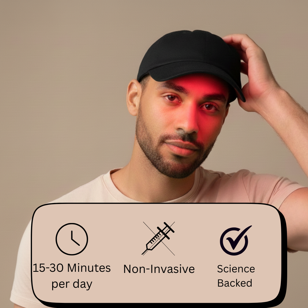 AnswerThe Red Beam Cap is designed for both men and women experiencing: